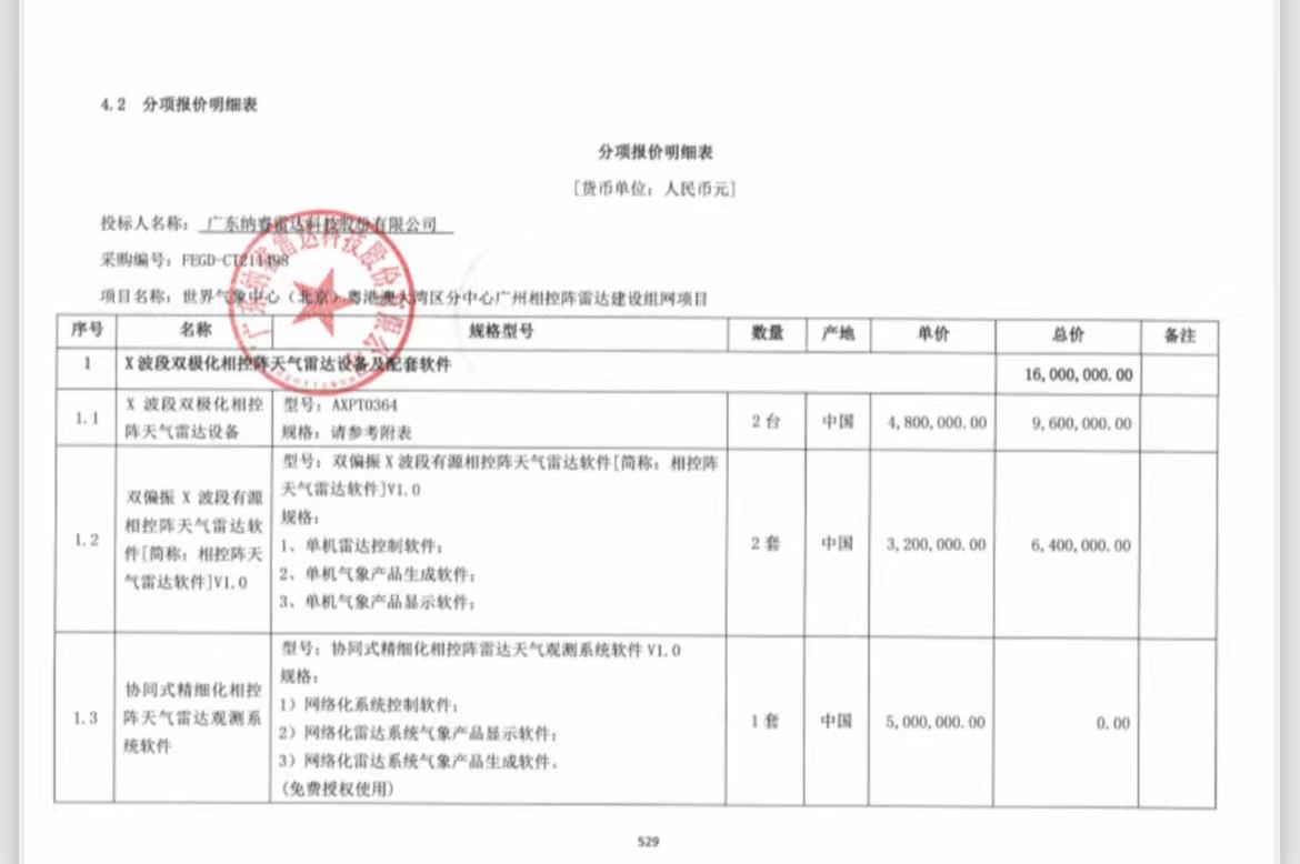 合同包1(世界氣象中心(北京)粵港澳大灣區(qū)分中心廣州相控陣雷達建設組網(wǎng)項目):